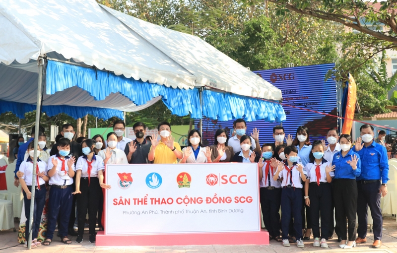 Tập đoàn SCG là một doanh nghiệp hàng đầu tại Đông Nam Á trong lĩnh vực xi măng và vật liệu xây dựng luôn mang trong mình sự mệnh hướng về xã hội, vì lợi ích cộng đồng. Trong nữa năm qua, Tập đoàn SCG luôn quan tâm, phối hợp cùng chính quyền, đoàn thể trong tỉnh để hỗ trợ, giúp đỡ người dân có hoàn cảnh khó khăn, trao tặng các suất học bổng giá trị cho học sinh, sinh viên vượt khó học tốt. Phối hợp cùng Tỉnh Đoàn Bình Dương để trao tặng các giường giấy, nhà vệ sinh hỗ trợ công tác phòng chống dịch bệnh Covid-19. Đặc biệt, Tập đoàn SCG đã quan tâm đầu tư sân thể thao cộng đồng tại khu phố 2, phường An Phú, Thành phố Thuận An.