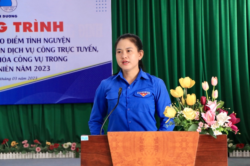 Phát biểu khai mạc chương trình, đồng chí Trần Thị Diễm Trinh – UV.BTV Trung ương đoàn, Bí thư Tỉnh đoàn, Chủ tịch Hội Đồng Đội, Chủ tịch Hội Sinh viên VN tỉnh Bình Dương đề nghị với chủ đề công tác năm 2023 là “Chuyển đổi số trong các hoạt động của Đoàn” và chủ đề tháng thanh niên 2023 “Tuổi trẻ tiên phong chuyển đổi số”, các hoạt động tình nguyện hỗ trợ người dân thực hiện dịch vụ công trực tuyến, tuyên truyền văn hóa công vụ, các hoạt động tuyên truyền, hướng dẫn người dân cài đặt, kích hoạt tài khoản định danh điện tử trên địa bàn tỉnh Bình Dương phải được triển khai thực hiện mạnh mẽ hơn nữa.