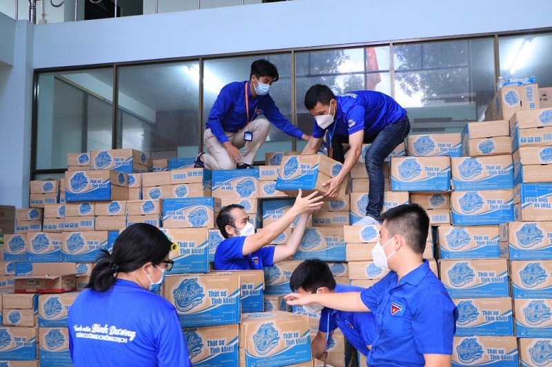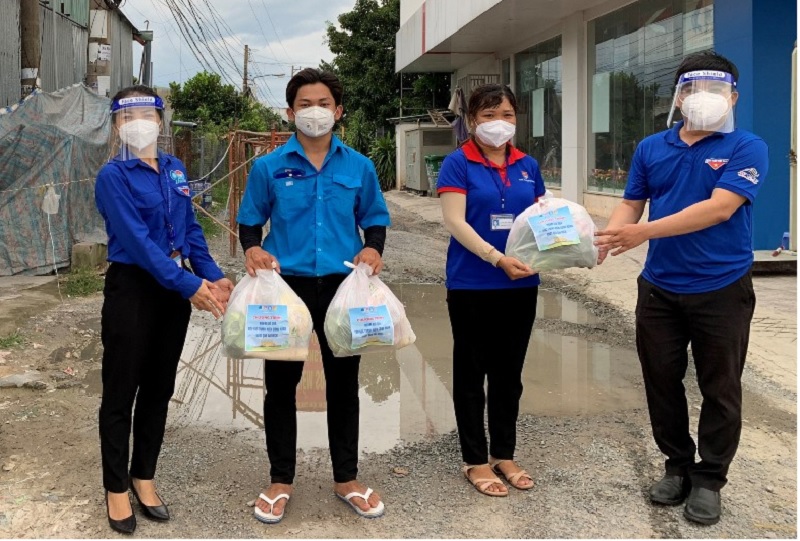 Theo đó, các phần quà bao gồm nhu yếu phẩm do Ban Thường vụ Tỉnh Đoàn, Ban Thư ký Hội Liên hiệp Thanh niên tỉnh Bình Dương vận động Công ty TNHH Phát triển hạ tầng và bất động sản Tạo Tín Phát trao tặng với tổng sổ tiền 50 triệu đồng; nhóm từ thiện Hoa Nắng trao tặng 500 kg rau, củ quả.