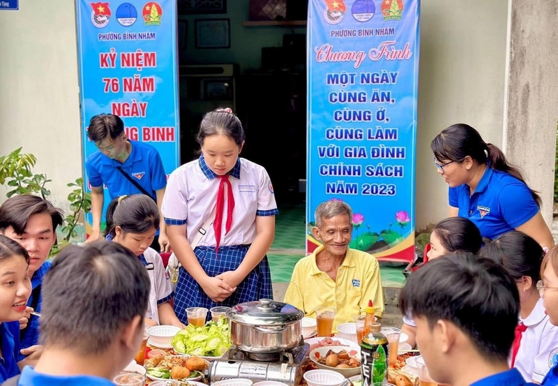 Bên cạnh đó, các cấp bộ Đoàn đã tổ chức nhiều hoạt động thiết thực và ý nghĩa như: Tu sửa, chỉnh trang, làm vệ sinh các bia, đài tưởng niệm; các công trình ghi công, phần mộ, đền thờ liệt sỹ; Tổ chức các điểm khám chữa bệnh, phát thuốc miễn phí cho các gia đình chính sách, người già neo đơn, người dân có hoàn cảnh khó khăn trên địa bàn; Tổ chức thăm hỏi, tặng quà và hỗ trợ cho người có công, gia đình chính sách, cựu thanh niên xung phong, thương bệnh binh…, Thăm hỏi, tặng quà Mẹ Việt Nam Anh hùng, Tổ chức chương trình Mâm cơm đền ơn đáp nghĩa, Bữa cơm nghĩa tình, Một ngày cùng ăn, cùng ở, cùng chia sẻ với mẹ Việt Nam anh hùng, gia đình liệt sĩ; Tổ chức các hoạt động giáo dục truyền thống, bồi đắp lý tưởng cách mạng cho thế hệ trẻ, tổ chức nói chuyện truyền thống, gặp gỡ các nhân chứng lịch sử; các hoạt động về nguồn, Hành trình Đi về các địa chỉ đỏ; tổ chức hoạt động văn hóa, văn nghệ với chủ đề ca ngợi truyền thống cách mạng tình yêu quê hương đất nước, ca ngợi các anh hùng liệt sĩ.