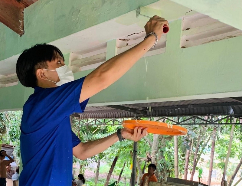 Đoàn viên thanh niên sửa chữa nhà cho gia đình chính sách