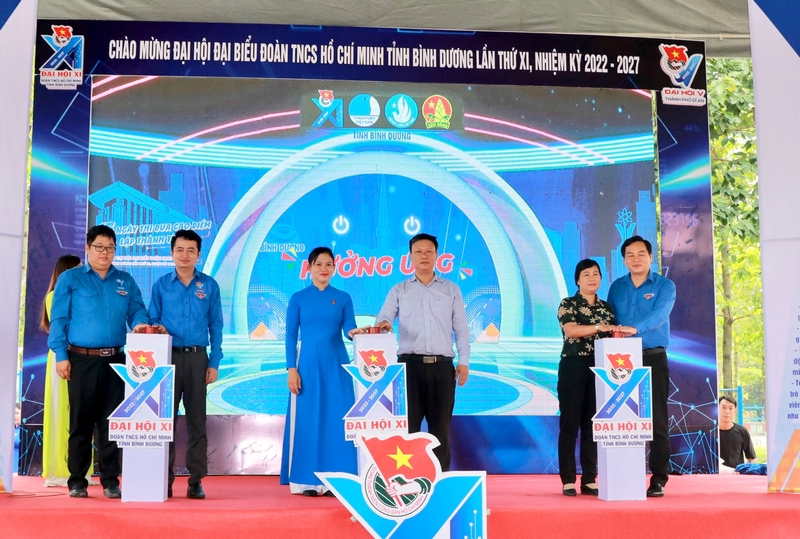 Đại biểu nhấn nút khởi động 15 ngày cao điểm chào mừng Đại hội Đoàn tỉnh