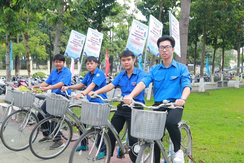 Đoàn viên, thanh niên đạp xe tuyên truyền hưởng ứng