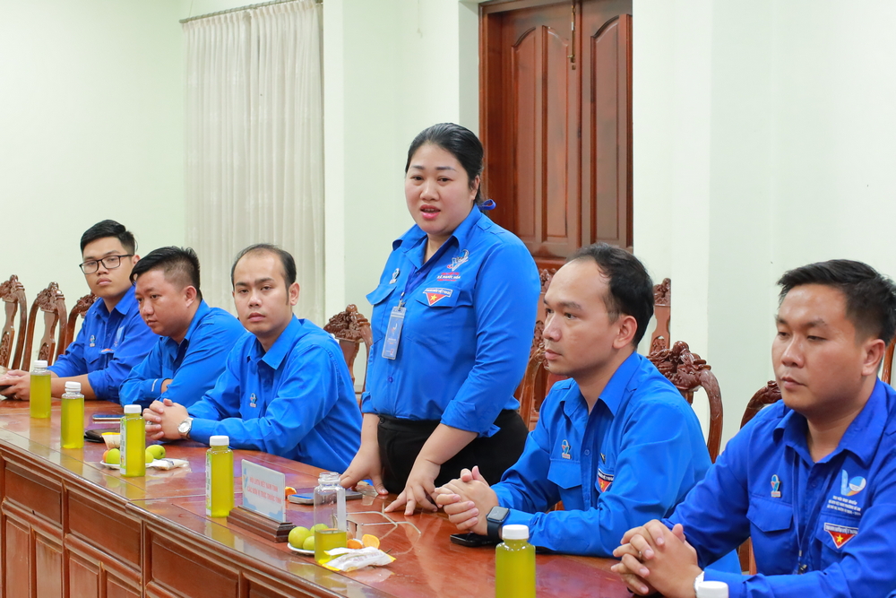 Chị Hoàng Thúy Vui - Phó Chủ tịch Hội LHTN Việt Nam huyện Phú Giáo phát biểu báo cáo và chia sẻ kinh nghiệm tổ chức Đại hội điểm.