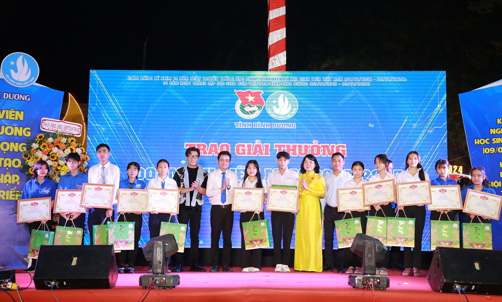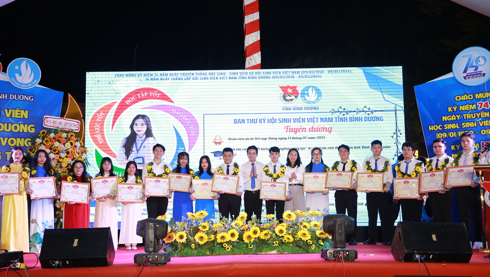 Tại chương trình, Hội SVVN tỉnh Bình Dương đã vinh danh 03 sinh viên đạt Giải thưởng “Sao Tháng Giêng” cấp Trung ương; 01 sinh viên đạt danh hiệu “Sinh viên 5 tốt” cấp Trung ương; 01 học sinh đạt danh hiệu “Học sinh 3 tốt” và 04 học sinh đạt danh hiệu “Học sinh 3 rèn luyện” cấp Trung ương; trao 17 giải thưởng Đoàn Thị Liên; tuyên dương 80 “sinh viên 5 tốt” và 05 tập thể “sinh viên 5 tốt” cấp tỉnh.