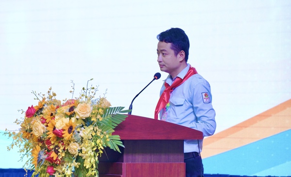 Đồng chí Lê Tuấn Anh, Phó Bí thư thường trực Tỉnh đoàn, Chủ tịch Hội đồng Đội tỉnh phát biểu tại đại hội