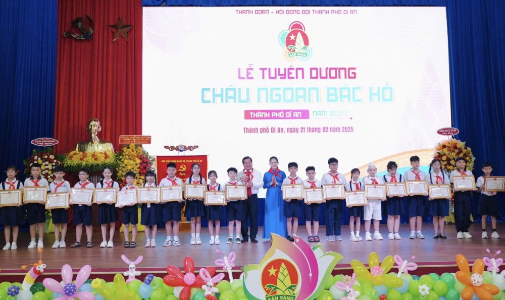 Dịp này, Hội đồng Đội thành phố tổ chức trao khen thưởng của UBND thành phố và Thành đoàn cho 129 đại biểu cháu ngoan Bác Hồ đã đạt thành tích xuất sắc trong công tác đội và phong trào thiếu nhi giai đoạn năm 2023-2025. Thành đoàn - Hội đồng Đội thành phố tri ân nguyên thường trực Hội đồng Đội thành phố Dĩ An qua các thời kỳ.