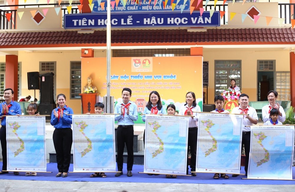 Tại chương trình, các em học sinh cùng tham gia sinh hoạt chủ điểm “Chiến thắng Điện Biên Phủ - Sức mạnh Việt Nam, tầm vóc thời đại” với hình thức thi “Lật trang sử vàng”; Ban Thường vụ Tỉnh Đoàn, Hội đồng đội tỉnh Bình Dương tặng công trình măng non “Sửa chữa Ngôi nhà khăn quàng đỏ”, trị giá 50 triệu đồng cho em Nguyễn Minh Tiến, học sinh lớp 5.1 trường Tiểu học Tân Vĩnh Hiệp B; Hội đồng đội thành phố Tân Uyên trao tặng công trình trang bị bản đồ Việt Nam tại 48 phòng học của các Chi đội thuộc Liên đội trường Tiểu học Tân Hiệp.