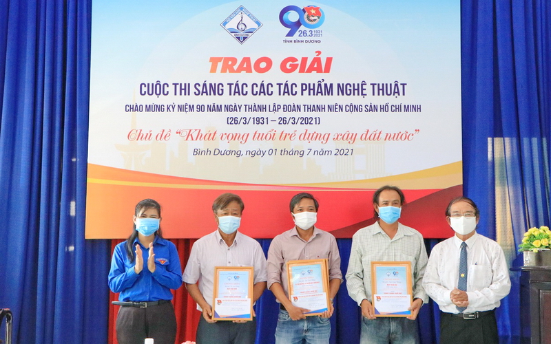 ĐTN: Chiều 01/7, Tỉnh Đoàn phối hợp Hội văn học Nghệ thuật tỉnh Bình Dương tổ chức chương trình Trao giải cuộc thi Sáng tác các tác phẩm nghệ thuật chào mừng 90 năm Ngày thành lập Đoàn TNCS Hồ Chí Minh chủ đề “Khát vọng tuổi trẻ dựng xây đất nước”.
