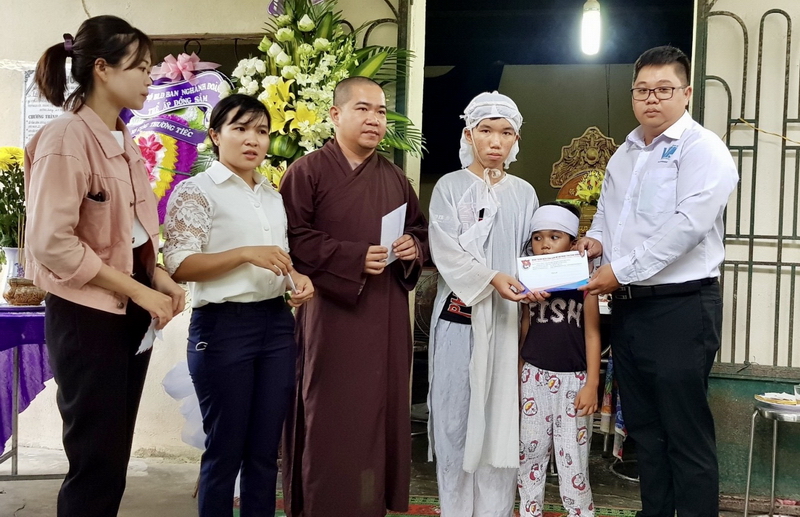 Theo đó, Ban Thường vụ Tỉnh đoàn, Hội LHTN Việt Nam tỉnh hỗ trợ 05 triệu đồng từ nguồn quỹ Hỗ trợ thanh niên có hoàn cảnh khó khăn; Hội LHTN Việt Nam tỉnh vận động Đại Đức Thích Thiện Hưng, Ủy viên Ban thư ký Hội LHTN Việt Nam tỉnh trụ trì chùa tổ Long Hưng trao tặng 10 triệu đồng.