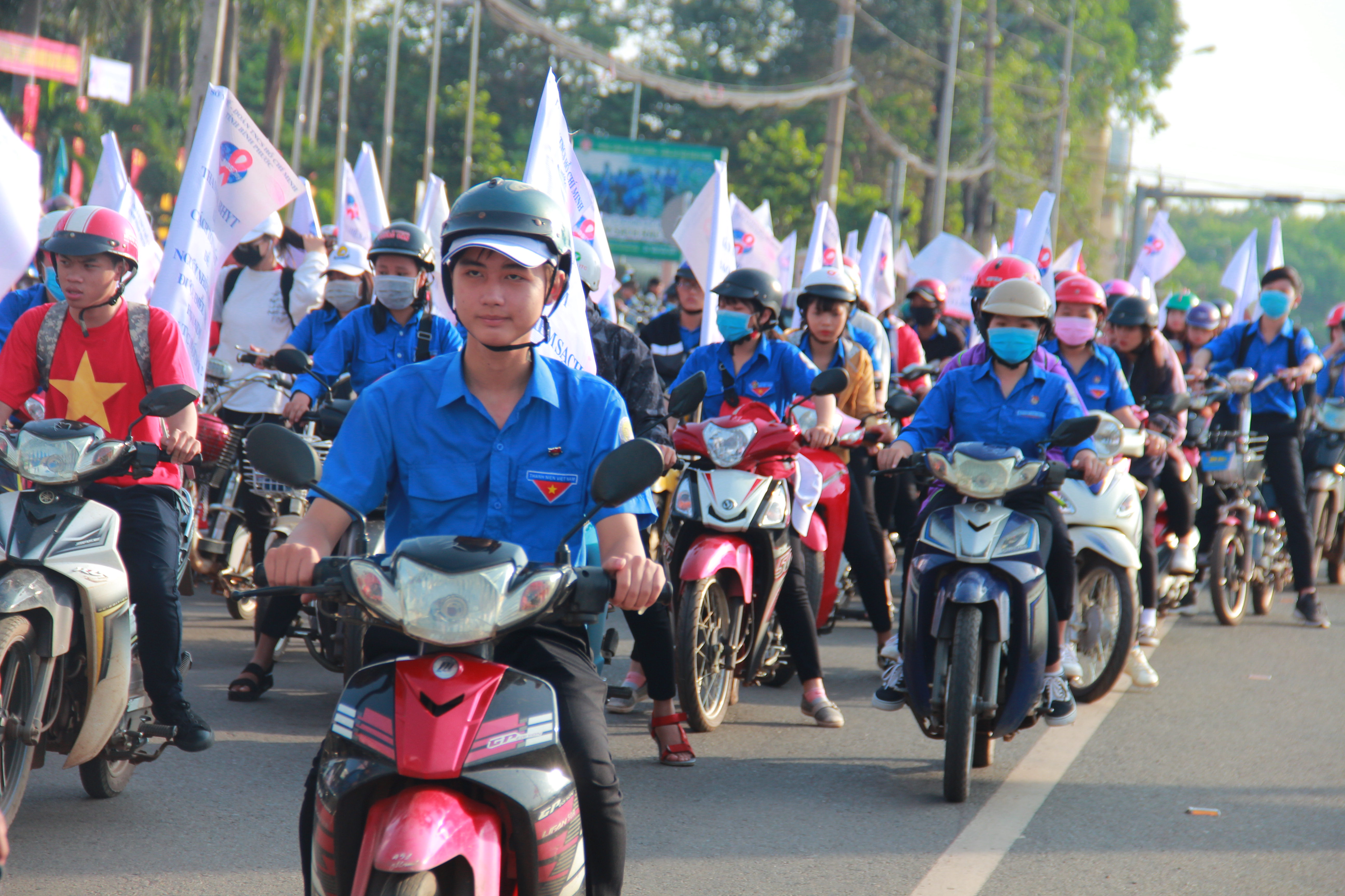 Sau Lễ mít tinh, đông đảo ĐVTN đã tham gia diễu hành tại các trục đường chính trên địa bàn thành phố Đồng Xoài để truyền thông đến người dân về Tháng hành động quốc gia phòng, chống HIV/AIDS và Ngày thế giới phòng, chống AIDS năm 2018.
