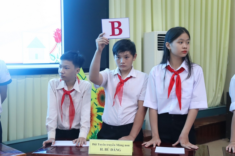 Các em thiếu nhi tham gia tranh tài Phần thi trắc nghiệm tuyên truyền về phòng chống đuối nước