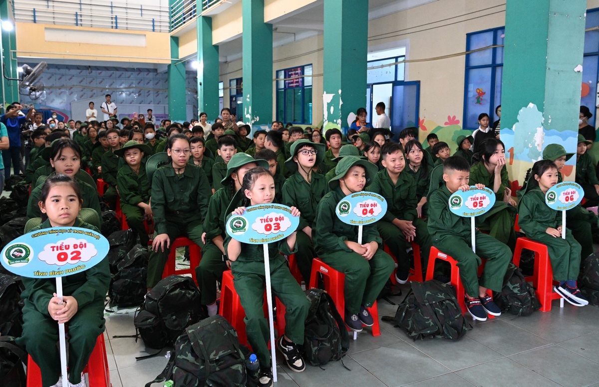 Tham gia chương trình 'Chúng em tập làm chiến sĩ” năm nay có 135 “Chiến sĩ nhí”, chia thành 08 tiểu đội, thời gian học tập là 5 ngày (từ ngày 23/6 đến ngày 27/6).