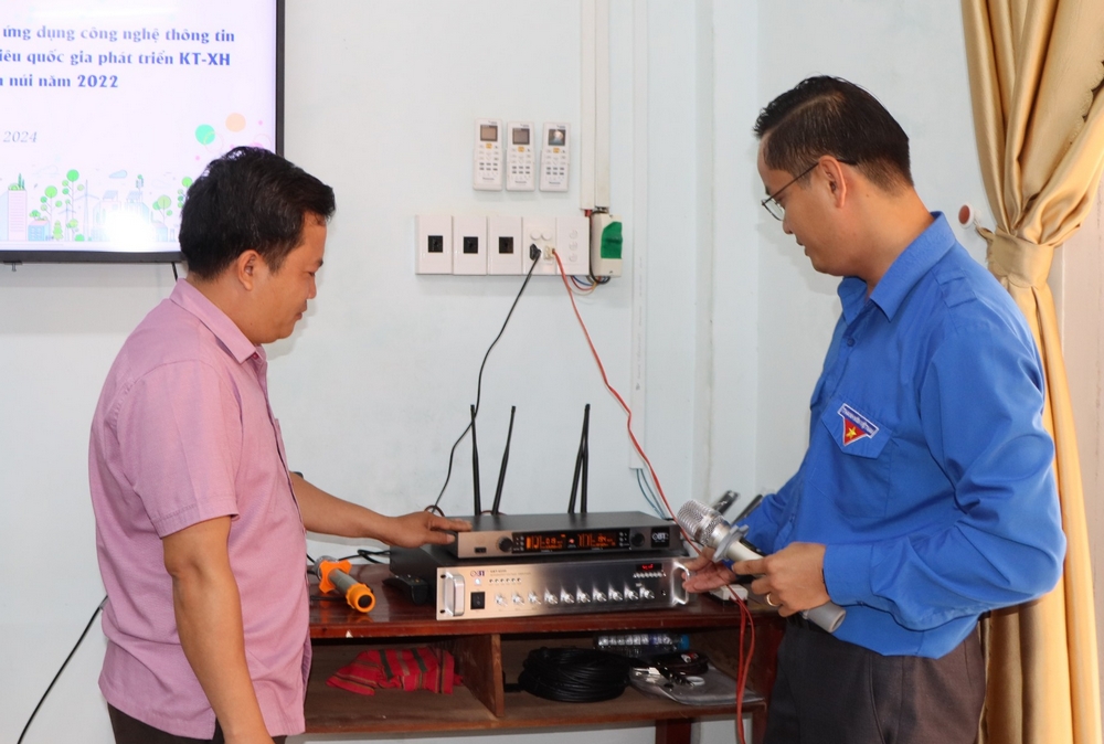 Phát biểu tại Lễ bàn giao, đồng chí Nguyễn Trọng Lâm - Phó Bí thư Tỉnh Đoàn, Chủ tịch Hội LHTN Việt Nam tỉnh chúc mừng dự án đã được triển khai thực hiện thành công và đi vào sử dụng. Với việc hỗ trợ các hạng mục trong dự án sẽ góp phần hỗ trợ đồng bào dân tộc thiểu số ứng dụng công nghệ thông tin, tiếp cận thông tin về đường lối, chính sách, pháp luật của Đảng, Nhà nước qua mạng internet; sử dụng dịch vụ công trực tuyến; học tập, nâng cao trình độ, kiến thức, kỹ năng sản xuất, phát triển kinh tế; đồng thời hỗ trợ cán bộ, công chức xã thuận tiện trong việc thực hiện nhiệm vụ, tuyên truyền sâu rộng tới người dân nắm bắt, nhận diện các phương thức, thủ đoạn của tội phạm công nghệ cao, phòng ngừa thông tin xấu độc, sai trái của các thế lực thù địch.