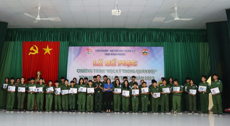 Ban Tổ chức trao Giấy chứng nhận và phần quà cho các chiến sĩ hoàn thành chương trình “Học kỳ trong Quân đội” lần thứ XI, năm 2023
