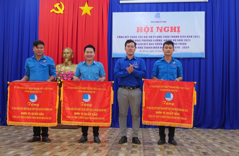 Dịp này, Trung ương Hội LHTN Việt Nam đã trao tặng Bằng khen cho 03 tập thể và 09 cá nhân đã có thành tích xuất sắc trong công tác Hội và phong trào thanh niên tỉnh Bình Phước năm 2022. Hội LHTN Việt Nam tỉnh đã trao tặng cờ thi đua đơn vị xuất sắc dẫn đầu cho 4 đơn vị gồm: Hội LHTN Việt Nam Thị xã Bình Long, Hội LHTN Việt Nam thành phố Đồng Xoài, Hội LHTN Việt Nam huyện Bù Đốp, Câu lạc bộ Zumba Dance - Bình Phước; trao biểu trưng cho 04 đơn vị dẫn đầu trong triển khai thực hiện Công trình 50 căn “Nhà Thanh niên” nhiệm kỳ gồm: Hội LHTN Việt Nam huyện Bù Đăng, Hội LHTN Việt Nam huyện Hớn Quản, Hội LHTN Việt Nam thị xã Chơn thành, Hội LHTN Việt Nam Thị xã Bình Long và trao tặng bằng khen cho 17 tập thể, 05 cá nhân có thành tích xuất sắc trong năm 2022.