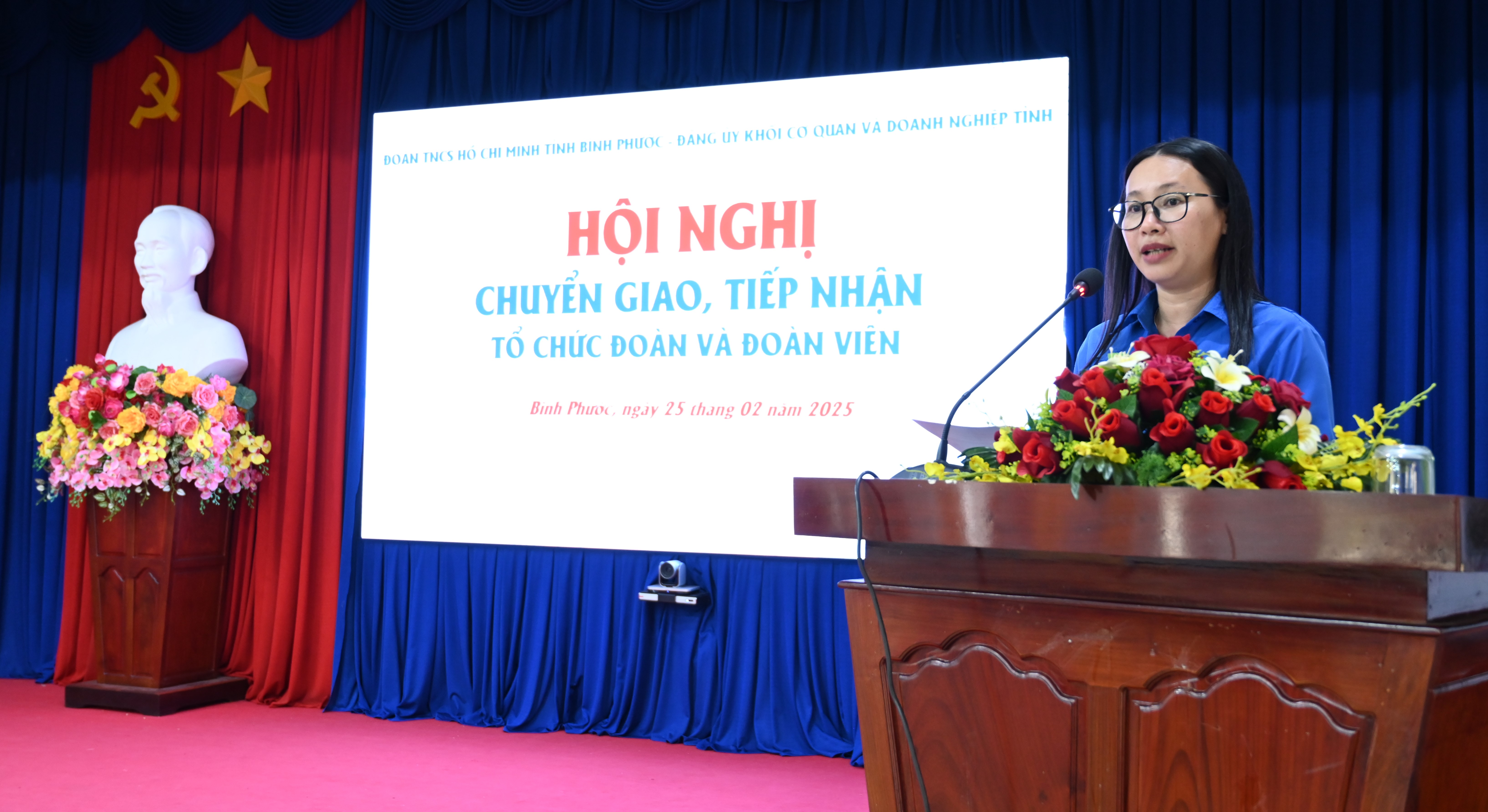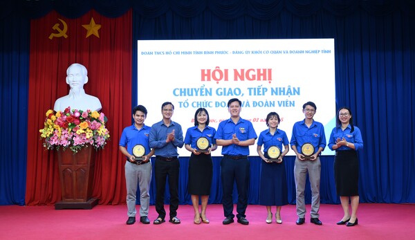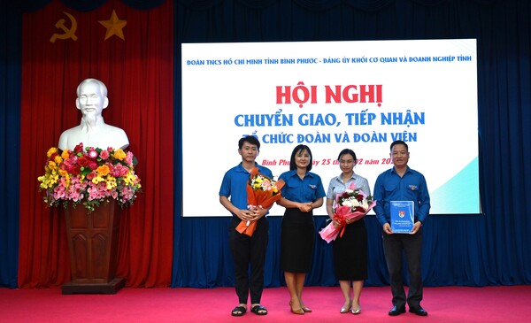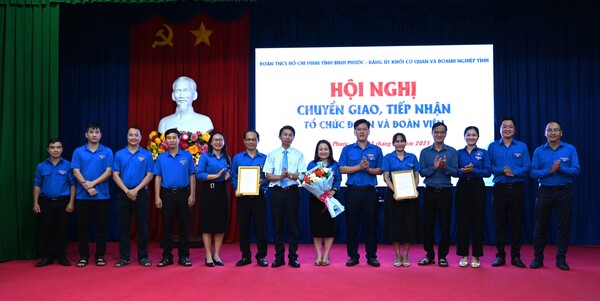 Tại hội nghị, Đoàn Khối Cơ quan và Doanh nghiệp tỉnh công bố quyết định chuyển giao tổ chức đoàn, đoàn viên Chi đoàn cơ sở Công ty cổ phần Cấp thoát nước Bình Phước, Chi đoàn cơ sở Chi nhánh Xăng dầu Bình Phước về sinh hoạt tại Thành đoàn Đồng Xoài từ ngày 01/3/2025.