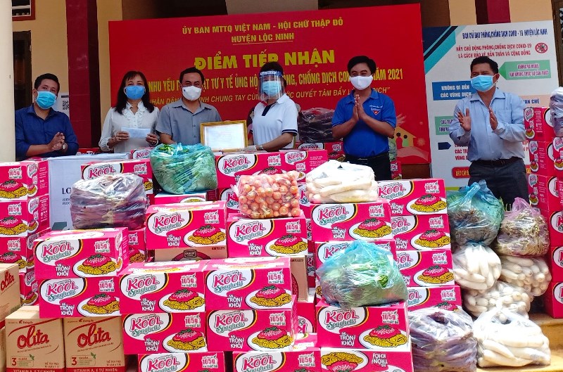 Theo đó, từ ngày 21/7 đến nay, Hành trình “Thắp lửa yêu thương - Kiên cường chống dịch” đã tới trao các nguồn hỗ trợ đến tất cả các địa phương trong tỉnh gồm hơn 1.450 kg gạo, 50 thùng nước ngọt, 100 thùng nước suối, 400 thùng mì tôm, 40.000 khẩu trang, 700kg muối điều, 2,6 tạ rau, củ quả, 400 chai dầu ăn, 400 chai nước tương, cùng 265 triệu đồng tiền mặt để hỗ trợ các Trạm y tế, khu vực cách ly, phong tỏa và các chốt phòng chống dịch.