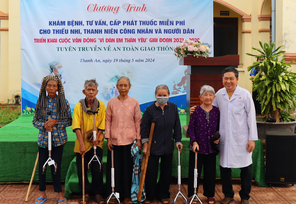 Bệnh viện Đa khoa Sài Gòn trao tặng 40 gậy chống inox cho người già xã Thanh An, huyện Hớn Quản