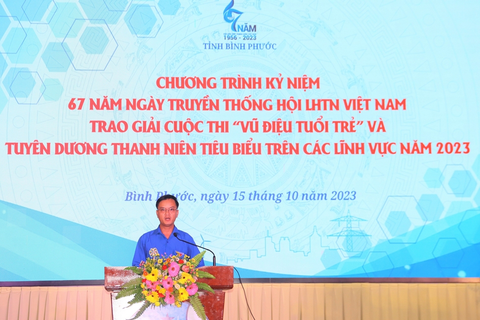 Cũng trong khuôn khổ chương trình kỷ niệm 67 năm ngày truyền thống Hội LHTN Việt Nam, Hội LHTN Việt Nam tỉnh phối hợp với Trung tâm Hoạt động Thanh thiếu nhi tỉnh tổ chức trao giải cho 16 tiết mục xuất sắc nhất trong Hội thi “Vũ điệu tuổi trẻ” tỉnh Bình Phước lần thứ II, năm 2023. Hội thi được phát động từ ngày 21/8 đến ngày 01/10, thu hút 48 tiết mục tham gia đến từ 11 huyện, thị xã, thành phố và các CLB trực thuộc Trung tâm Hoạt động thanh thiếu nhi tỉnh.