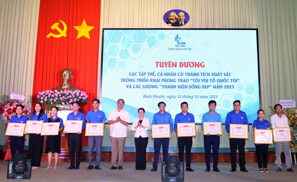 Dịp này, Trung ương Hội LHTN Việt Nam đã trao tặng Bằng khen cho 4 cá nhân có thành tích tiêu biểu trong triển khai phong trào Tôi yêu Tổ quốc tôi. Hội LHTN Việt Nam tỉnh Bình Phước đã tặng Bằng khen cho 28 tập thể, cá nhân có nhiều thành tích trong triển khai phong trào “Tôi yêu Tổ quốc tôi”, các gương “Thanh niên sống đẹp” và gương thanh niên tiêu biểu trên các lĩnh vực năm 2023.