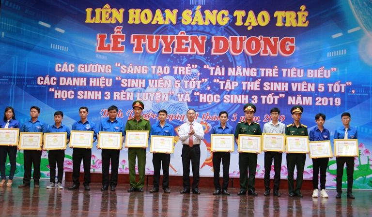 Tỉnh Đoàn Bình Phước tổ chức Lễ tuyên dương “Sáng tạo trẻ” Tài năng trẻ tiêu biểu, các danh hiệu “Sinh viên 5 tốt”, “Tập thể sinh viên 5 tốt”, “Học sinh 3 rèn luyện” và “Học sinh 3 tốt” tỉnh Bình Phước, năm 2019 cho 120 đoàn viên, thanh niên tiêu biểu trên địa bàn toàn tỉnh được tuyên dương.