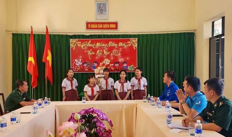 Các tiết mục văn nghệ vui tươi, đầm ấm về Tết của các em thiếu nhi biểu diễn tặng cho các cán bộ, chiến sĩ