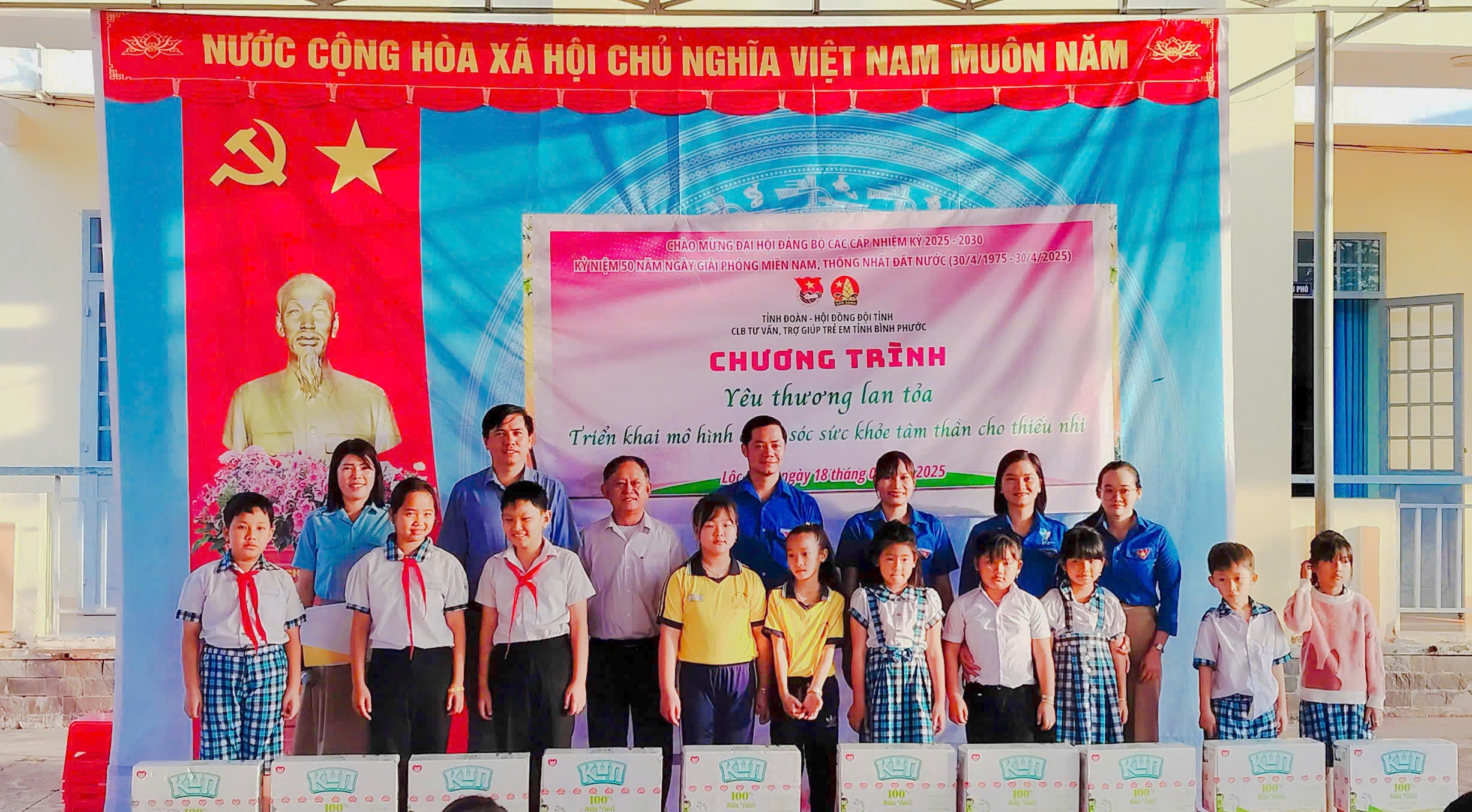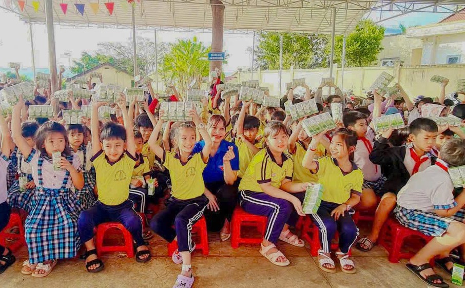 100 thùng sữa được với tổng trị giá 35 triệu đồng được trao tặng các em học sinh