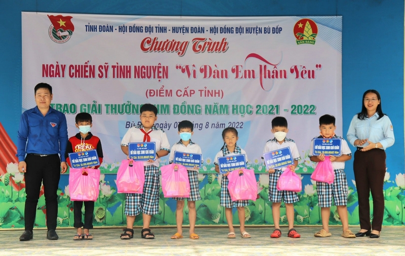 Tại chương trình điểm cấp tỉnh, Tỉnh đoàn - Hội đồng Đội tỉnh, huyện đoàn và Hội đồng đội huyện Bù Đốp đã trao tặng 200 phần quà cho các em thiếu nhi tham gia chương trình. Quà tặng do Hội từ thiện Hạt Phù sa hỗ trợ. Trao tặng 10 suất học bổng đỡ đầu học sinh khó khăn mỗi suất trị giá 20 triệu đồng/3 năm cho 10 em thiếu nhi vượt khó học tốt. Đồng thời trao tặng 7 bảng công trình “biển cảnh báo phòng, chống đuối nước” tại các điểm ao, hồ, sông, suối trên địa bàn huyện Bù Đốp. Tổng kinh phí thực hiện chương trình cấp tỉnh là 225 triệu đồng. Ngoài ra, tại chương trình thừa ủy quyền của Hội đồng Đội Trung ương, chị Lê Thị Hồng Phấn - Phó Bí thư Tỉnh đoàn, Chủ tịch Hội đồng Đội tỉnh Bình Phước đã trao giải thưởng Kim Đồng của Trung ương Đoàn cho em Nguyễn Cao Hà Phương học sinh lớp 8a1, trường THCS Thanh Bình (huyện Bù Đốp).
