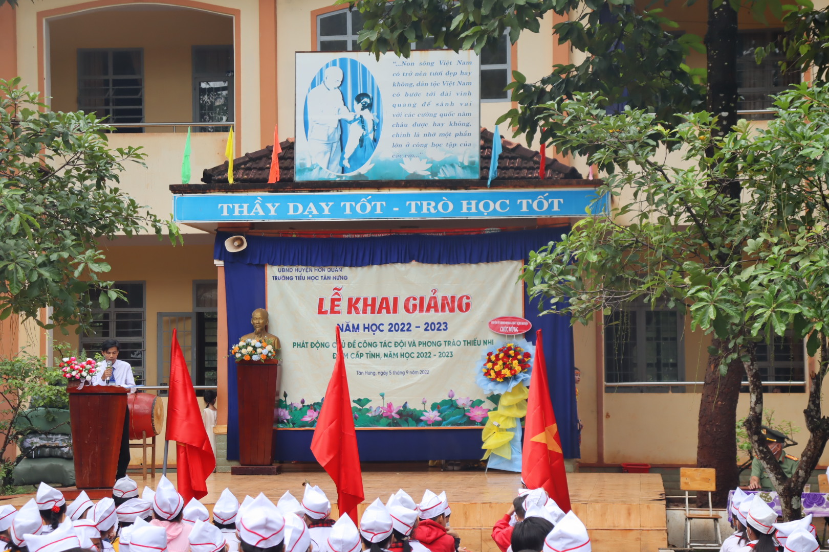 Liên đội Tiểu học Tân Hưng, huyện Hớn Quản được chọn làm đơn vị điểm cấp tỉnh với sự tham gia của gần 1.000 đội viên, thiếu niên nhi đồng của trường.