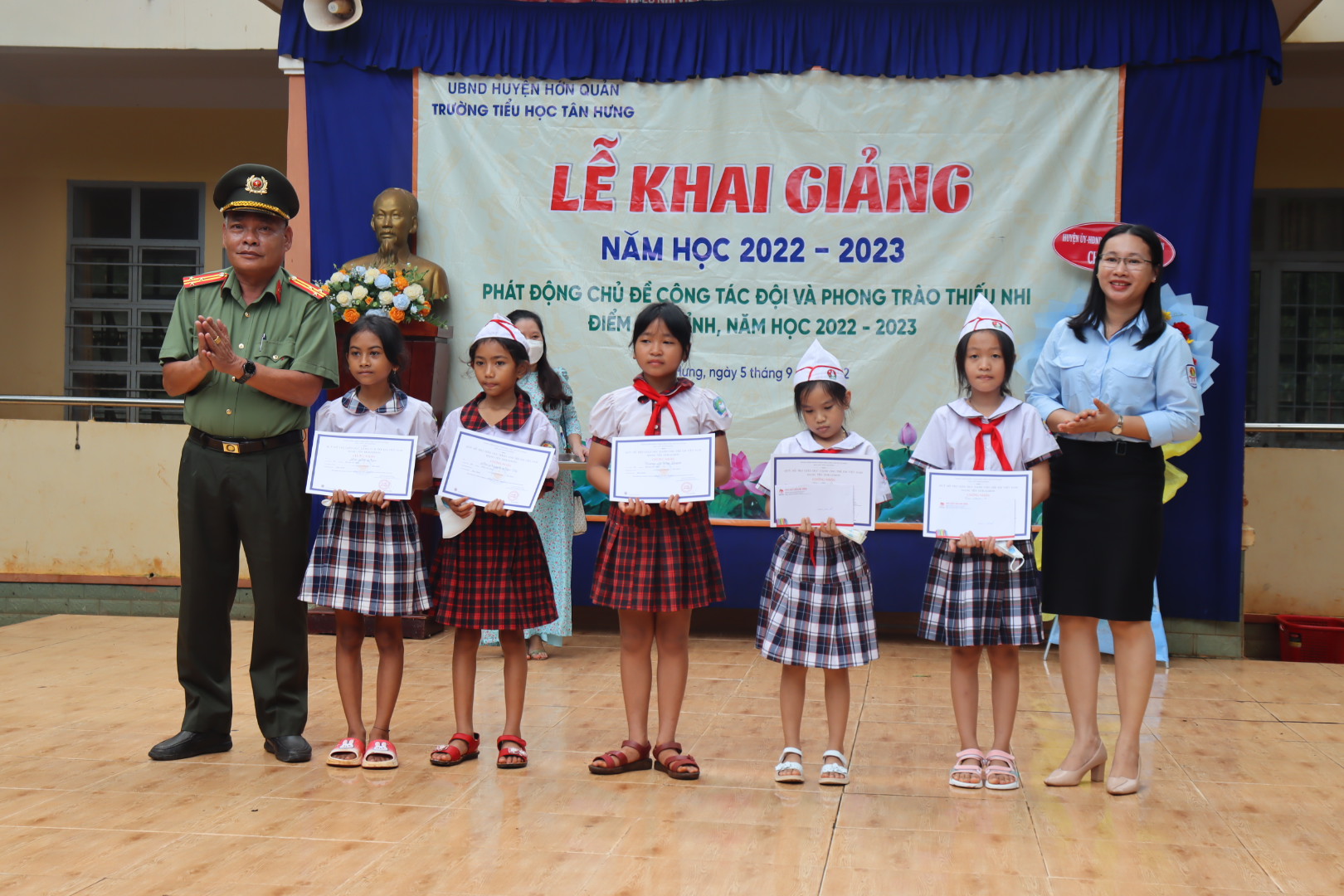 Cũng tại lễ phát động, thừa ủy quyền của Giám đốc Nhà xuất bản Kim Đồng, Hội đồng Đội tỉnh đã trao tặng 10 suất học bổng Đoraemon cho 10 học sinh hoàn cảnh khó khăn, học giỏi trên địa bàn huyện Hớn Quản với tổng trị giá 10 triệu đồng. Ngoài ra, Liên đội cũng đã vận động đơn vị tài trợ trao tặng 500 em học sinh khó khăn của trường với 500 bộ đồ thể dục và 500 áo thun.