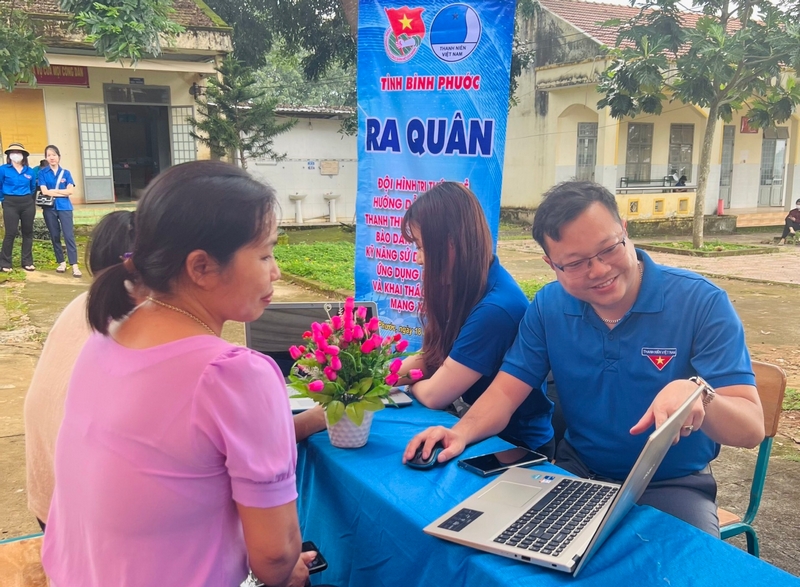 Với khẩu hiệu “Tuổi trẻ Bình Phước tiên phong chuyển đổi số”, Đội hình tri thức trẻ tình nguyện đã triển khai các hoạt động như: Hướng dẫn cách khai thác internet, mạng xã hội Zalo, Facebook an toàn, hiệu quả; hướng dẫn cài đặt ứng dụng VNeID, VssID, truy cập Cổng dịch vụ công quốc gia, app Bình Phước Today, cách tạo tài khoản trên Cổng dịch vụ công của tỉnh… cho hơn 150 lượt thanh thiếu nhi, người dân trên địa bàn xã Thọ Sơn, huyện Bù Đăng.