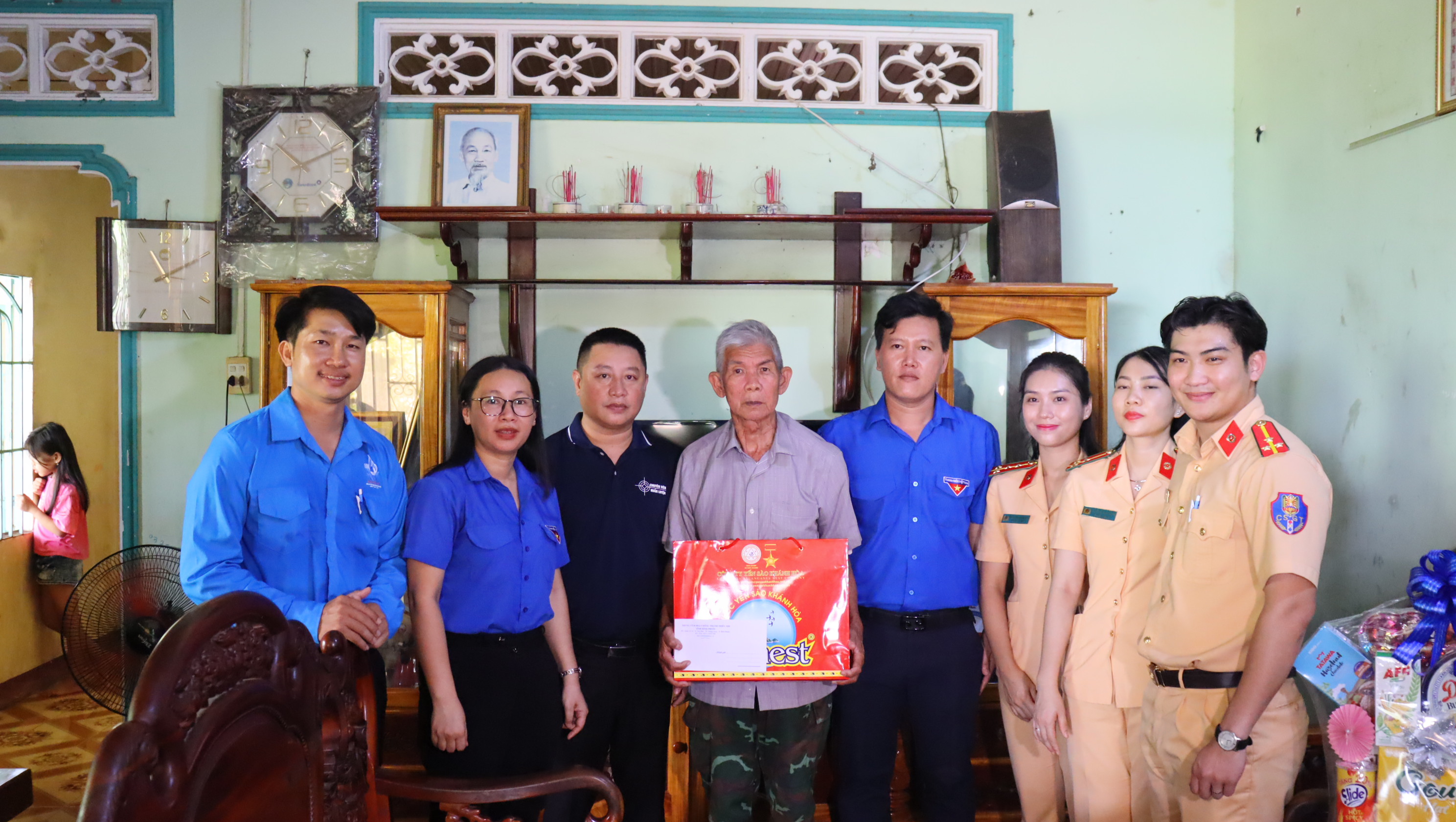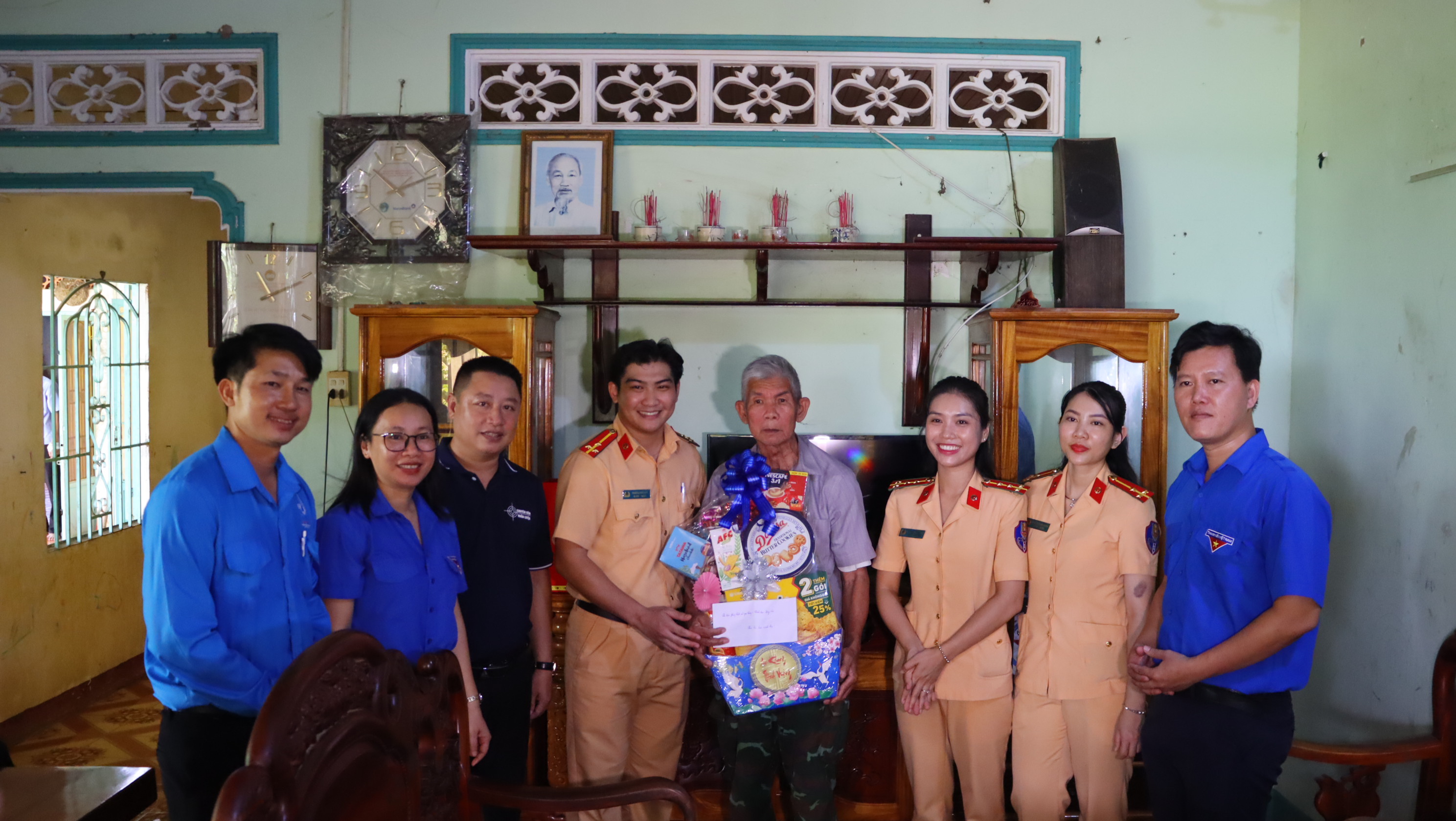 Nhân dịp này, Thành Đoàn Đồng Xoài phối hợp Chi đoàn Phòng Cảnh sát giao thông Công an tỉnh tổ chức chương trình “Bữa cơm sum vầy - ấm áp yêu thương” tại nhà ở của gia đình Anh hùng Lực lượng vũ trang nhân dân Dương Đức Thùng.