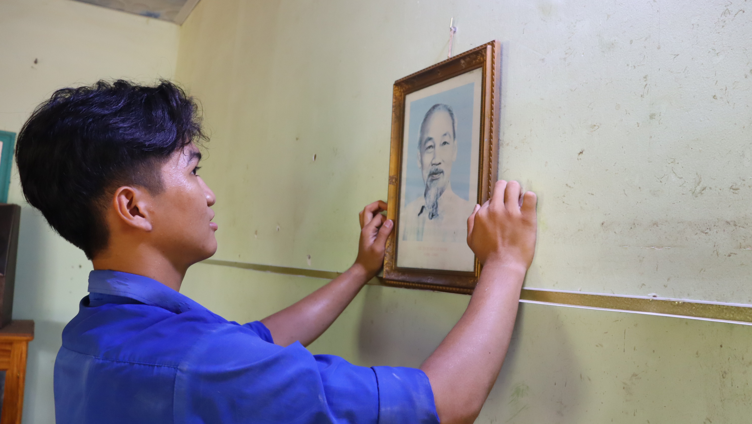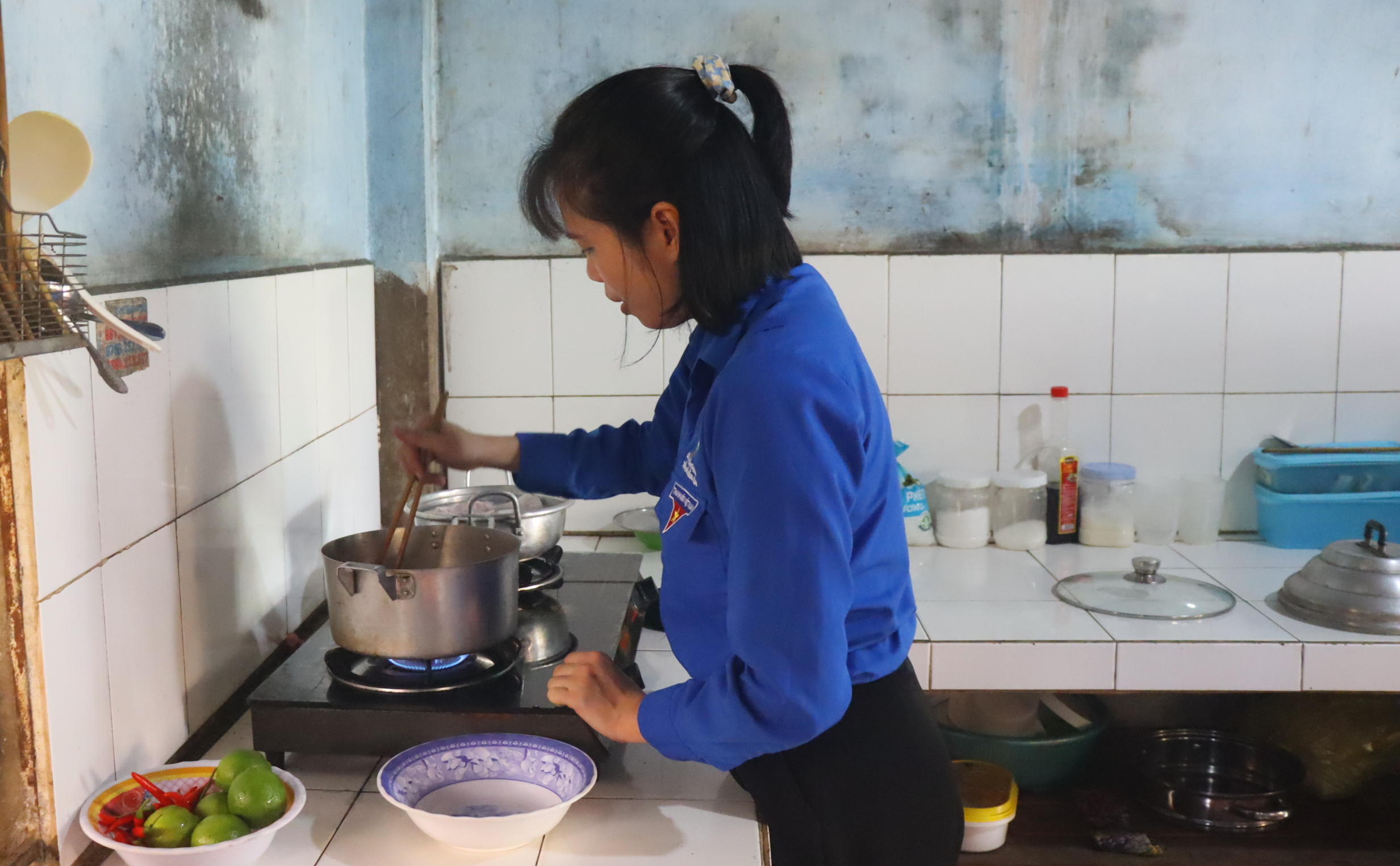 Từ sáng sớm, các bạn đoàn viên, thanh niên được phân công có mặt để vệ sinh nhà cửa, tu sửa một số vật dụng trong nhà, chăm sóc vườn rau, chuẩn bị thực phẩm để nấu bữa ăn dinh dưỡng, ấm cúng cùng gia đình ông Thùng.