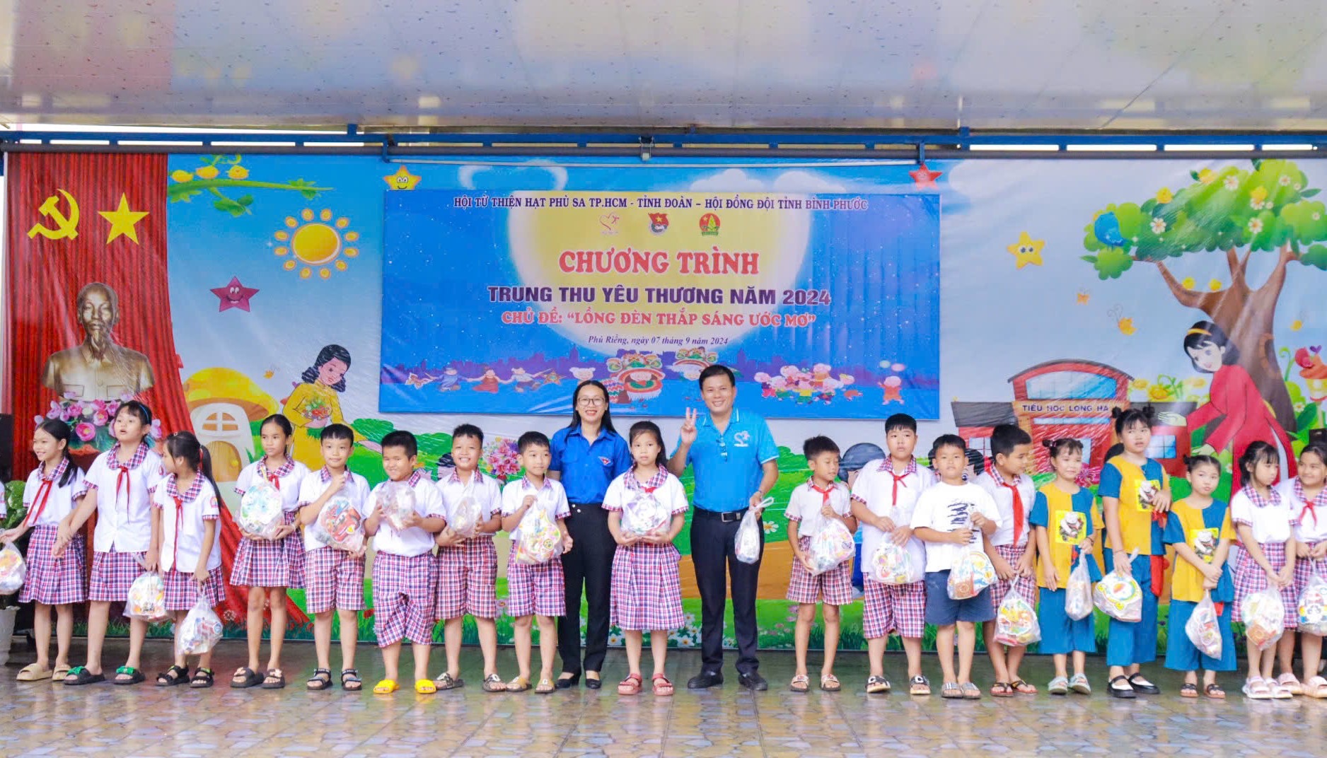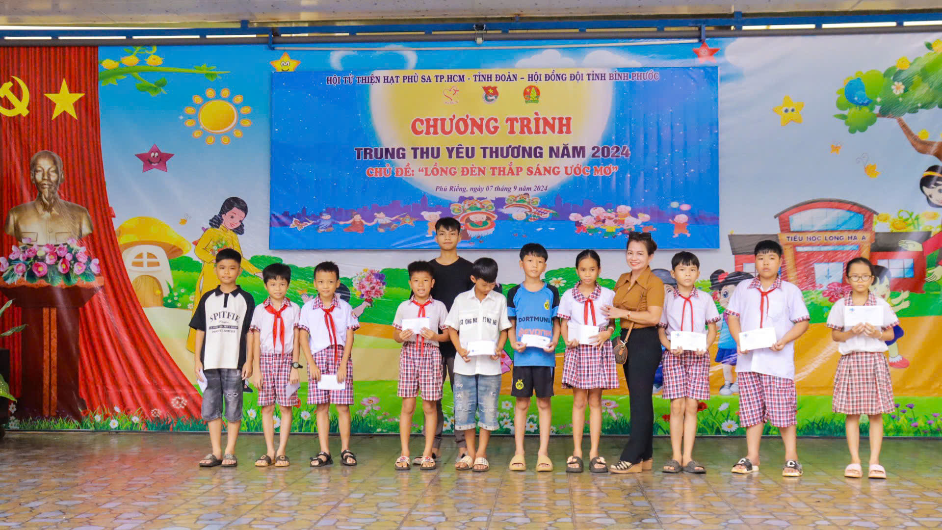 Tại chương trình “Trung thu yêu thương” năm 2024 với chủ đề “Lồng đèn thắp sáng ước mơ”, Ban Tổ chức đã trao tặng 10 suất học bổng với trị giá 500.000đ/ suất cho các em học sinh có hoàn cảnh khó khăn, vượt khó học tốt; trao tặng 800 phần quà trị giá 120 triệu đồng cho các em thiếu nhi trên địa bàn xã Long Hà.