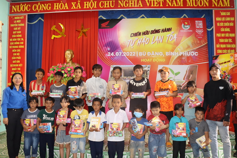 “Hành trình “Chiến hữu đồng hành - Tự hào lan tỏa” đã đi qua gần 20 tỉnh, thành trên cả nước do Công ty Honda Việt Nam phối hợp Liên minh Winner thực hiện. Tiếp nối hành trình, tại Bình Phước, chúng tôi mong muốn đem đến cho các em nhỏ những phần quà ý nghĩa. Qua đó, kịp thời động viên, khích lệ những mầm non tương lai của đất nước cố gắng phấn đấu trở thành con ngoan, trò giỏi” - Chủ nhiệm CLB Winner 93 Bình Long Đàm Duy Phong chia sẻ.