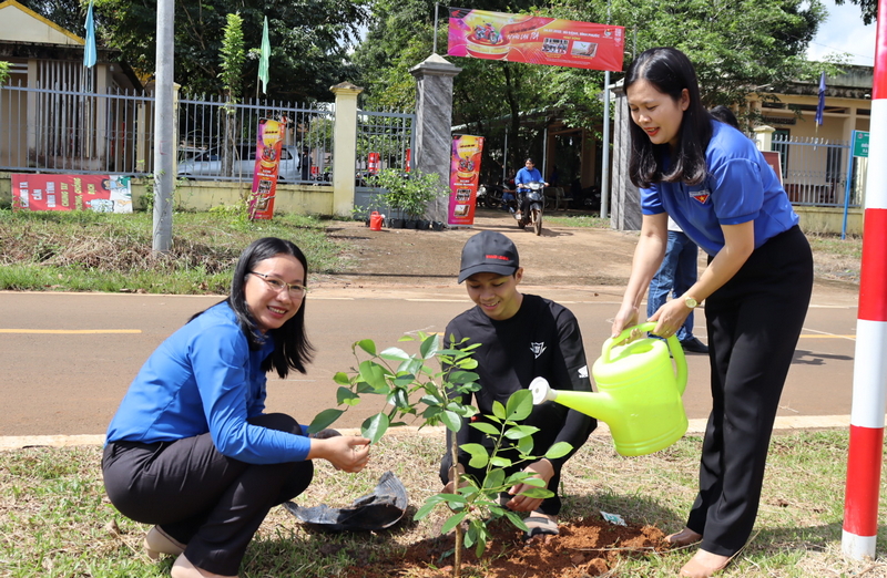 Trồng 100 cây osaka đỏ dọc trục chính tuyến đường xã Đồng Nai, huyện Bù Đăng