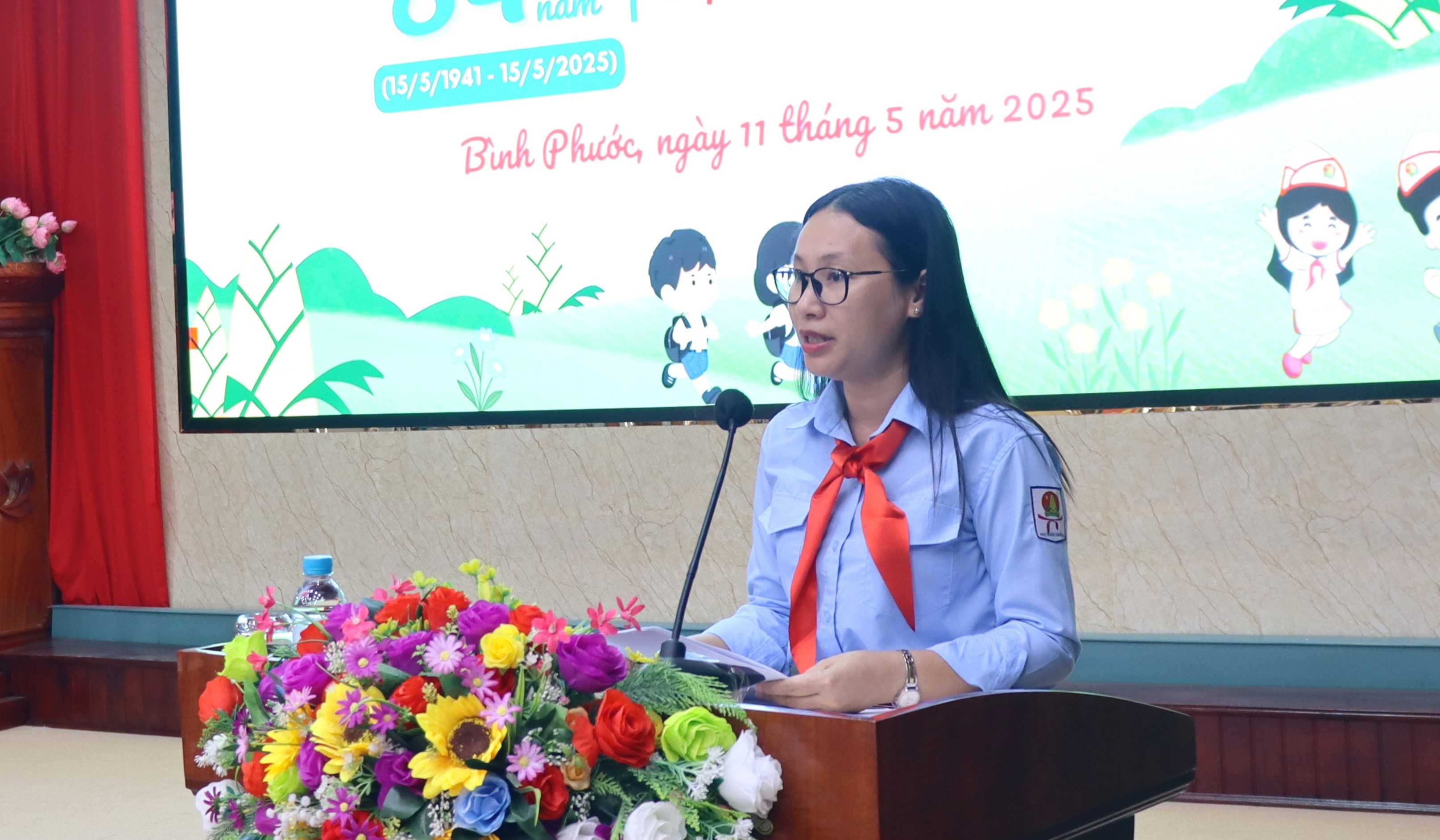 Phát biểu ôn lại truyền thống 84 năm vẻ vang của Đội TNTP Hồ Chí Minh, đồng chí Lê Thị Hồng Phấn, Phó Bí thư Tỉnh đoàn, Chủ tịch Hội đồng Đội tỉnh khẳng định: 84 năm qua, tiếp bước truyền thống hào hùng của các thế hệ cha anh, thiếu nhi Bình Phước đã không ngừng nỗ lực, tích cực tham gia các hoạt động, phong trào thi đua như: “Thiếu nhi Bình Phước thi đua thực hiện tốt 5 điều Bác Hồ dạy”, “Nghìn việc tốt”, “Kế hoạch nhỏ”, “Đọc và làm theo Báo Đội”, các hoạt động “Đền ơn đáp nghĩa”, “Uống nước nhớ nguồn”...