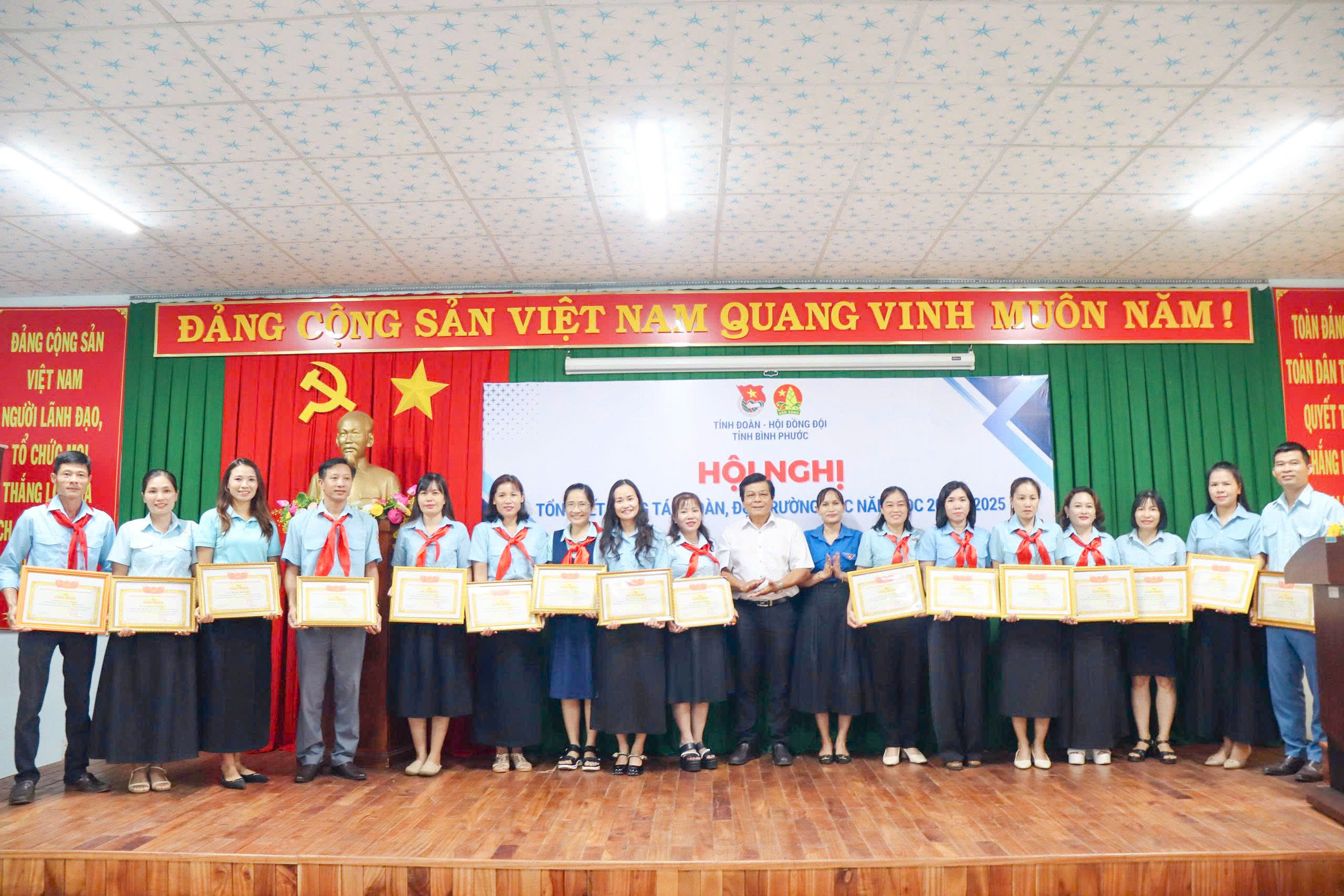 Dịp này, Tỉnh đoàn và Hội đồng Đội tỉnh đã trao Cờ thi đua xuất sắc dẫn đầu công tác đoàn trường học cho đơn vị Thành đoàn Đồng Xoài và dẫn đầu công tác đội, phong trào thiếu nhi cho Hội đồng Đội thị Đoàn Bình Long; trao Bằng khen của Tỉnh đoàn cho 26 tập thể và 30 cá nhân có thành tích xuất sắc trong công tác đoàn, đội trường học năm học 2024 - 2025.