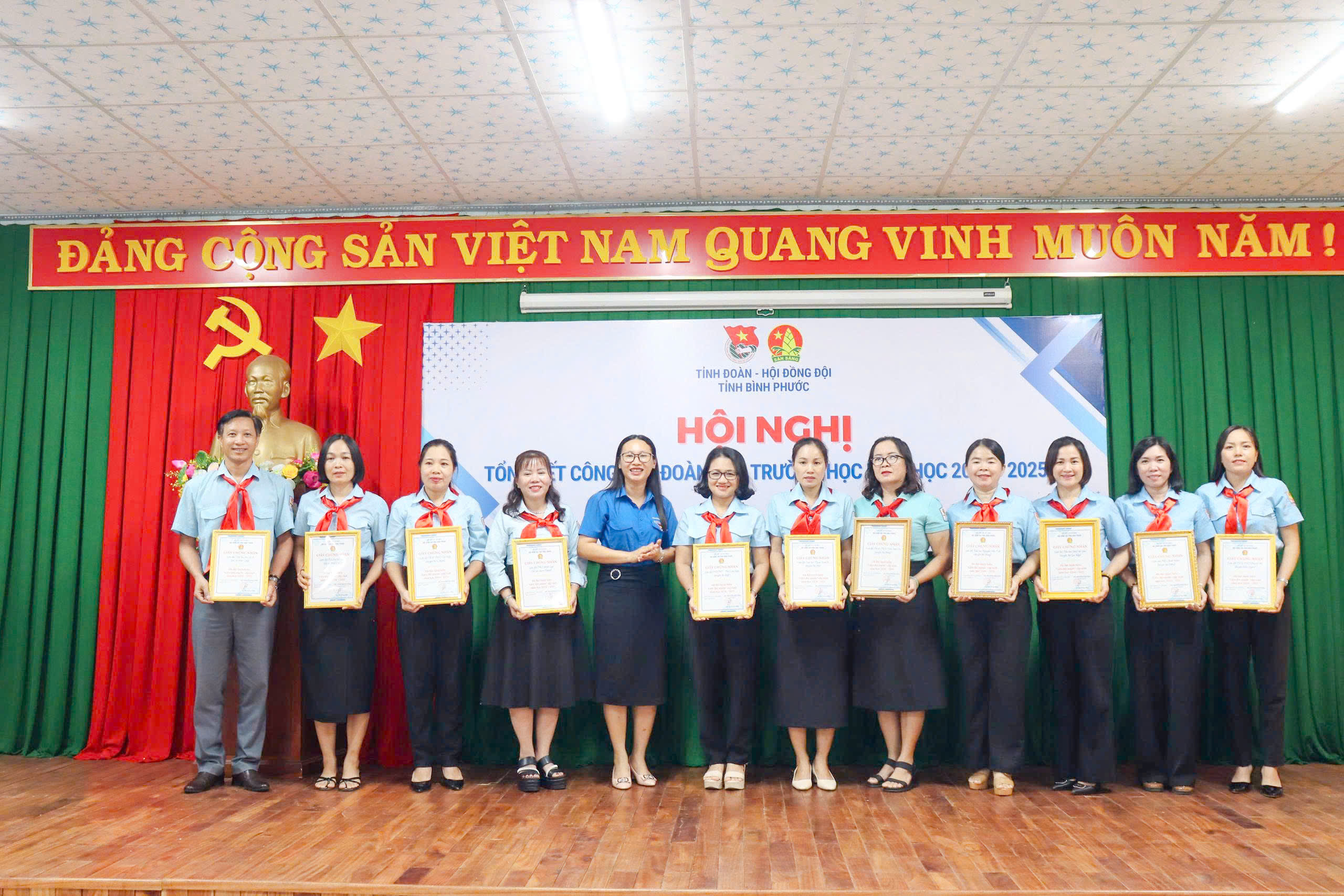 Công nhận danh hiệu “Liên đội mạnh” cấp tỉnh cho 61 đơn vị có thành tích xuất sắc trong công tác đội và phong trào thiếu nhi năm học 2024 - 2025; đồng thời tri ân các đồng chí Chủ tịch, Phó Chủ tịch Hội đồng Đội các huyện, thị xã, thành phố đã có nhiều đóng góp tích cực trong công tác đội và phong trào thiếu nhi tỉnh Bình Phước.