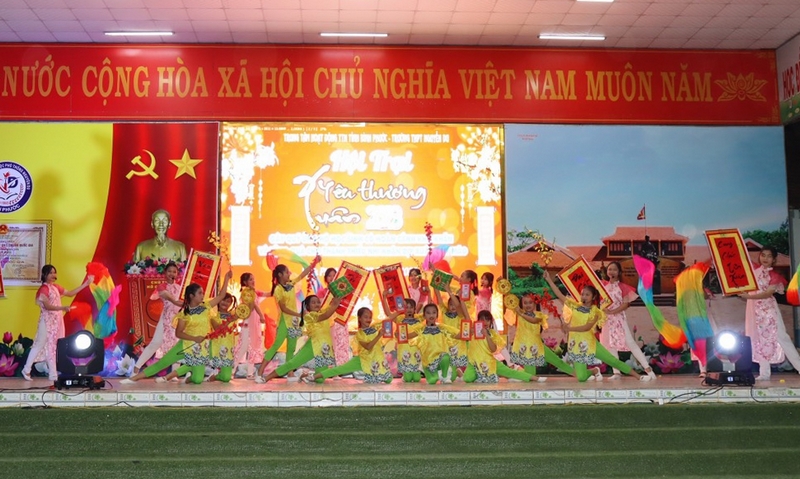 Tại Chương trình, các em học sinh, thanh thiếu nhi được thưởng thức các tiết mục văn nghệ đặc sắc, mang đậm âm thanh, sắc màu mùa Xuân đến từ Trung tâm hoạt động thanh thiếu nhi tỉnh và Trường THPT Nguyễn Du biểu diễn…