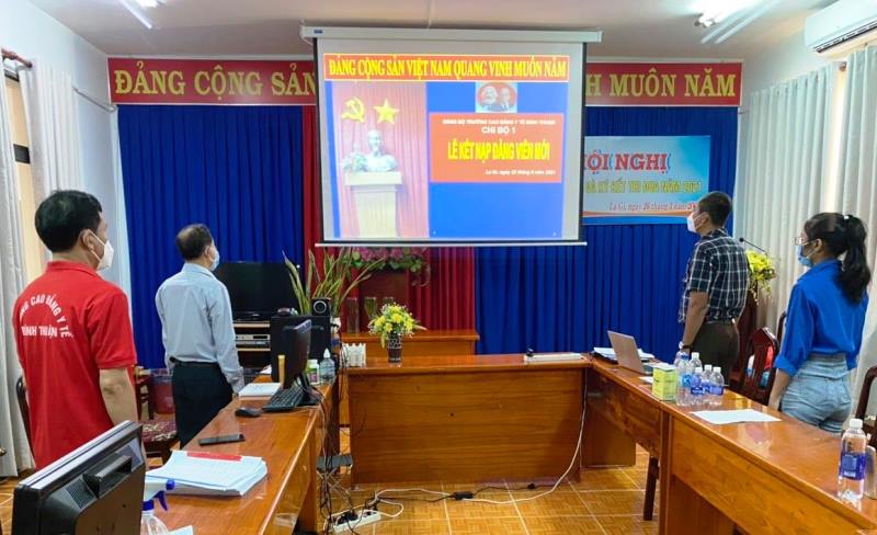 Đây là lễ kết nạp đặc biệt và nhiều cảm xúc với tất cả các đồng chí trong chi bộ. Đặc biệt ở đây, sinh viên ưu tú Lư Nữ Anh Thuyền đang cùng với 04 thầy, cô và 42 bạn học sinh, sinh viên khác trực tiếp tham gia tình nguyện phòng chống dịch tại thị xã La Gi, nơi có tình hình dịch bệnh Covid-19 phức tạp và căng thẳng nhất trên địa bàn tỉnh Bình Thuận.
