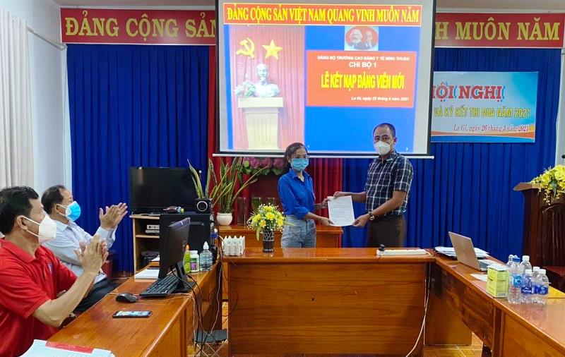 Tính đến thời điểm hiện tại Chi bộ 01 có 06 đảng viên đang tham gia công tác hỗ trợ phòng chống dịch, trong đó có 05 đồng chí đang trực tiếp tham gia tình nguyện phòng chống dịch tại thị xã La Gi và 01 đồng chí được biệt phái hỗ trợ cho Trung tâm kiểm soát tật tỉnh Bình Thuận (CDC Bình Thuận). Do vậy, buổi lễ kết nạp được tổ chức bằng hình thức trực tuyến với điểm cầu chính tại Trung tâm Y tế thị xã La Gi.