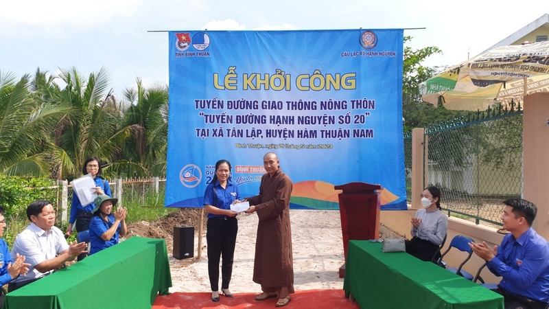 Nhận thức được tầm quan trọng của việc thuận tiện trong đi lại sẽ góp phần giúp cho người dân trên tuyến đường giao thông nông thôn thuận lợi hơn trong sinh hoạt, các em học sinh sẽ có điều kiện đến trường tốt hơn góp phần giữ vững an ninh chính trị, trật tự an toàn xã hội, Tỉnh đoàn, Hội LHTN Việt Nam tỉnh đã vận động nguồn lực hỗ trợ bê tông hóa tuyến đường giao thông nông thôn tại xã Tân Lập, huyện Hàm Thuận Nam dài (37m x ngang 4m), trong đó Câu Lạc Bộ Hạnh Nguyện hỗ trợ 50 triệu đồng, phần còn lại do địa phương đối ứng.