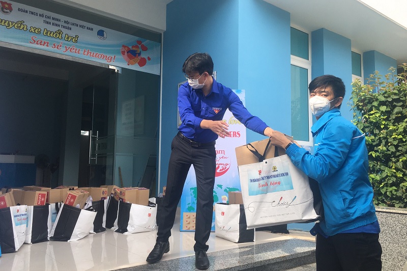 Trước đó vào ngày 8/8 và ngày 14/8, Tỉnh đoàn đã phối hợp Đoàn Trường Cao đẳng Cộng đồng, Hội Thiện nguyện Phan Thiết, Công ty TNHH Xổ số kiến thiết Bình Thuận, Hội thiện nguyện Xì trum Tánh Linh tổ chức chương trình “San sẻ yêu thương với đồng bào xa xứ” hỗ trợ cho những người lao động phổ thông, nhất là lao động trẻ, lao động tự do ngoài tỉnh, người bán vé số dạo, các trường hợp có hoàn cảnh khó khăn trên địa bàn thành phố Phan Thiết nơi đang thực hiện giãn cách theo Chỉ thị 16 của Chính phủ.