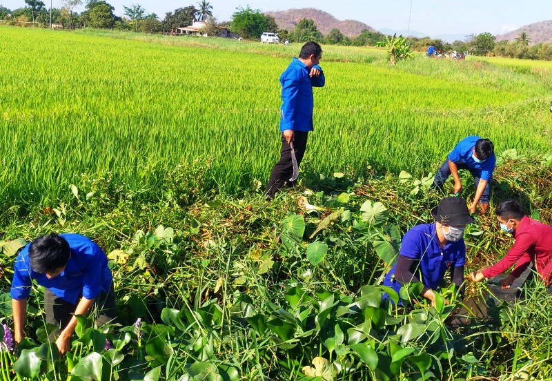Đoàn viên thanh niên tham gia làm sạch kênh mương nội đồng