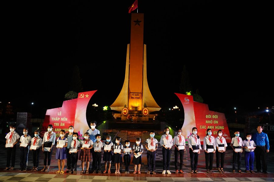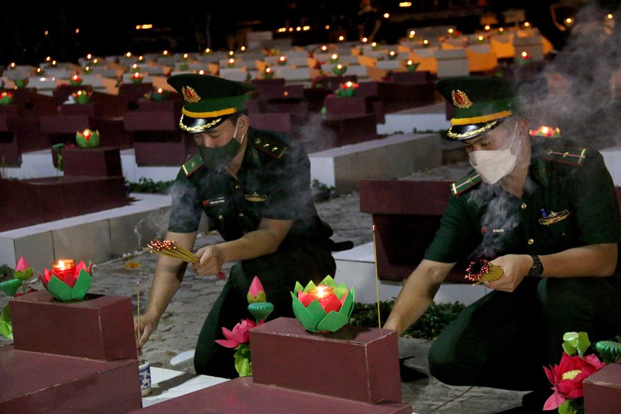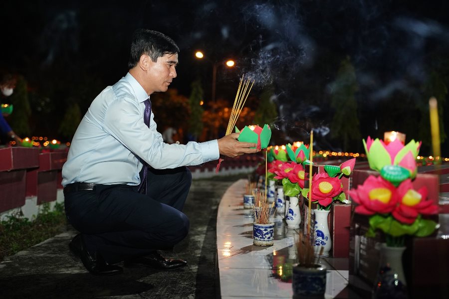 Trong không khí trang nghiêm, xúc động, các đồng chí lãnh đạo tỉnh cùng đoàn viên thanh niên và nhân dân địa phương đã dâng hoa, thắp hương và thắp lên những ngọn nến tri ân trên hơn 9000 phần mộ các anh hùng liệt sĩ.