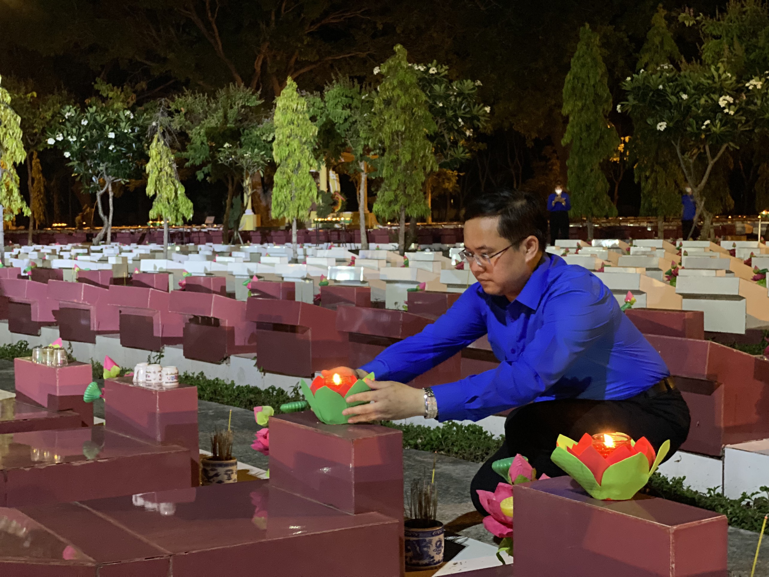 Đồng chí Nguyễn Quốc Huy – UVBCH Trung ương Đoàn, Bí thư Tỉnh Đoàn thắp nến trên các phần mộ liệt sỹ