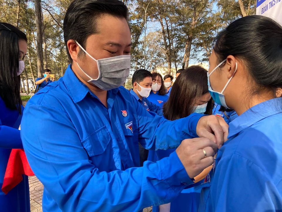 Trao huy hiệu Đoàn cho các thanh niên ưu tú được kết nạp đoàn viên mới |