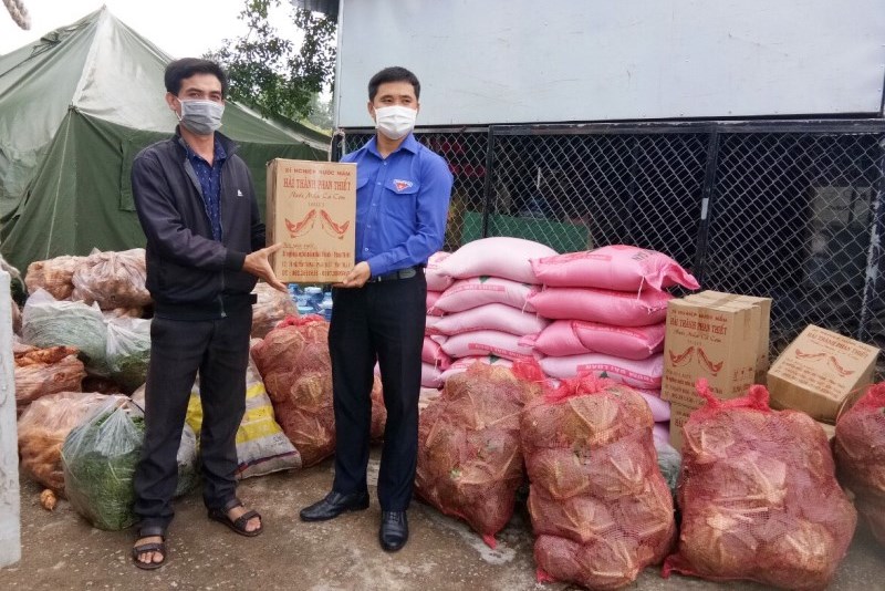 Cũng trong ngày 8/8, Ban Thường vụ Tỉnh Đoàn đã đến thăm, tặng quà khu vực bị phong tỏa tại thôn 2, xã La Dạ, huyện Hàm Thuận Bắc - địa phương kết nghĩa cùng Tỉnh Đoàn Bình Thuận.